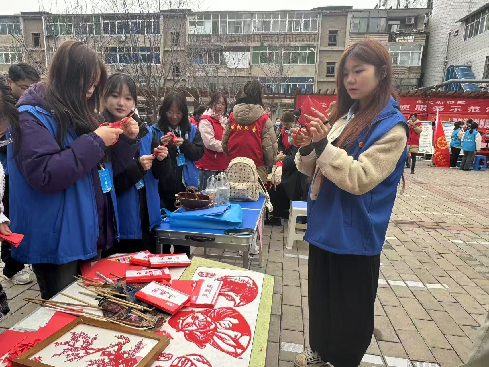 智能机电学院20余名师生走进咸阳市天王社区,开展非遗文化展示和腰鼓表演活动。活动现场,精美的剪纸作品和皮影角色形态各异,引得居民们凑近观赏、询问技巧,学生们一边展示一边耐心讲解其剪纸技巧和皮影角色的灵活操作。另一边,活力四射的腰鼓表演动作整齐有力,鼓点激昂,瞬间点燃现场气氛,不少居民也跟着节奏鼓掌。通过皮影、剪纸等传统手工艺展示,向社区居民普及非遗文化知识,弘扬中华优秀传统文化。陕北腰鼓表演为活动现场增添了浓厚的文化氛围,赢得了居民们的阵阵掌声。志愿者们身体力行,丰富了社区文化生活,传承了非遗文化,更以实际行动弘扬了雷锋精神,加强了学校与社区的联系,获得社区居民一致好评。