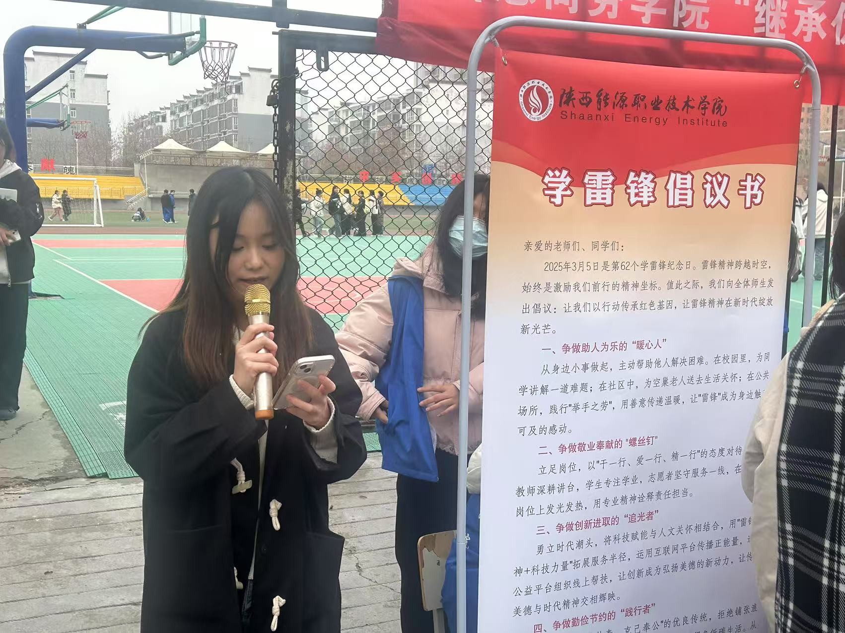 在秦都区统一广场,信息商务学院的志愿者们通过雷锋故事分享、雷锋精神介绍等形式,向活动现场的人们宣传雷锋精神和事迹,号召大家从身边小事做起,践行雷锋精神,传递社会正能量。同时在学校操场门口举行“继承优良传统·弘扬雷锋精神”志愿活动,通过签名、宣读向雷锋同志学习的倡议书、雷锋事迹介绍等形式,向全校师生宣传雷锋精神,并用实际行动引领更多学生参与到学雷锋活动中,让雷锋精神在校园里生根发芽,激励学生们在奉献中成长,在实践中担当。