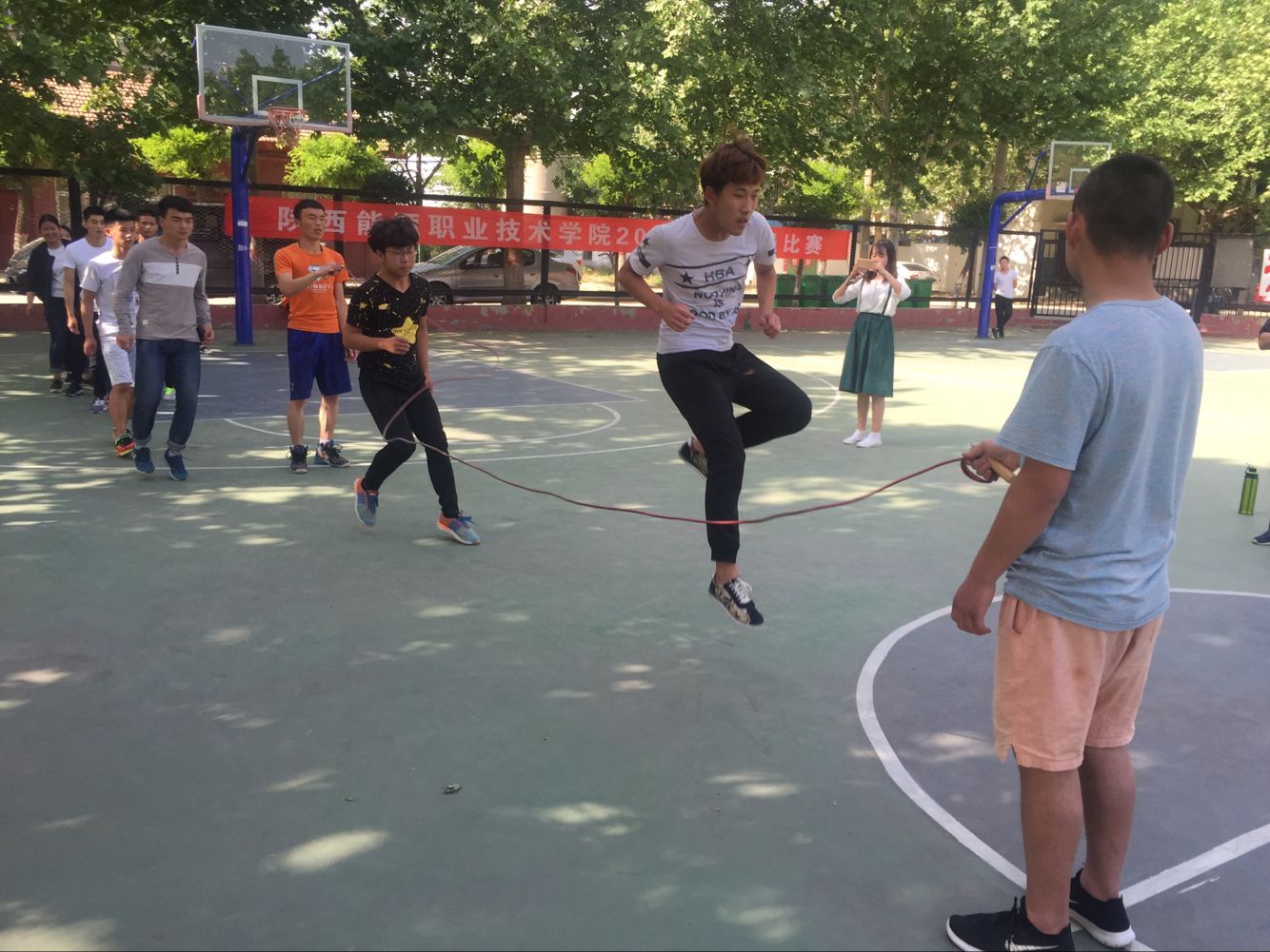 本次比赛本着友谊第一,比赛第二的指导思想,在同学们蓄势待发,斗志昂扬的气氛中拉开了帷幕,随着裁判员的一声令下,只见学生们飞快的挥舞着绳子,进行着激烈的角逐,围观的同学也越来越多,不停地为参赛选手加油鼓劲。选手们也都发挥出自己的最佳状态。共有60名同学分别获得了男女单项的一二三等奖;6个系部获得了团体奖。团体第一名:基础部、团体第二名:能源(建筑)工程系、团体第三名:医学技术系、团体第四名:临床医学系、团体第五名:医学护理系、团体第六名:地质测量系。赛后给获得名次的团体和个人颁发了奖牌和奖品,以此鼓励。