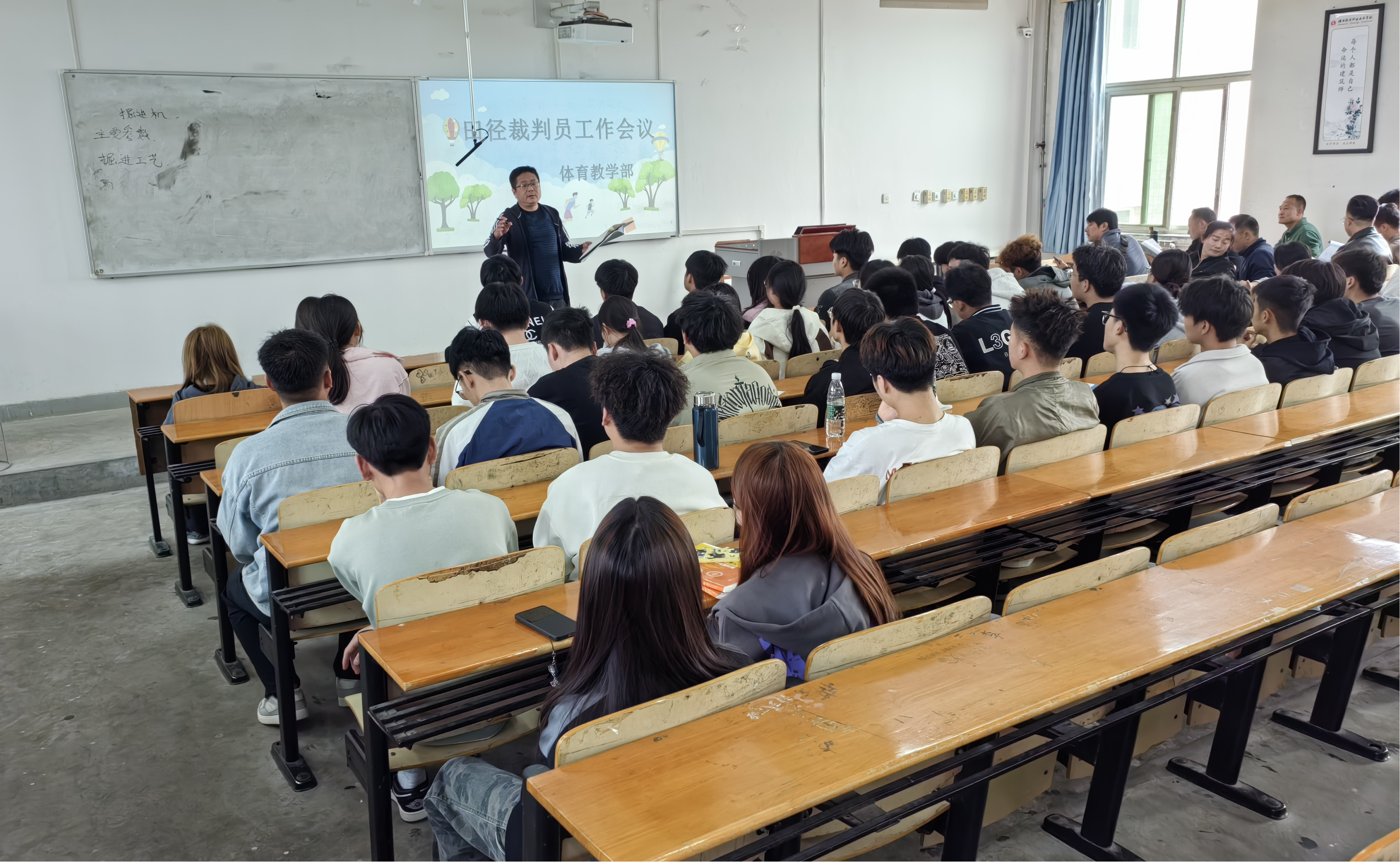4月7日下午,我校第二十届田径运动会裁判员工作培训会议在办公楼阶梯教室召开,裁判长和裁判员共六十余人参加。培训会由体育教学部主任牛大刚主持,韩坤霖副教授就田径裁判相关知识作了培训讲解。