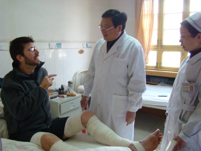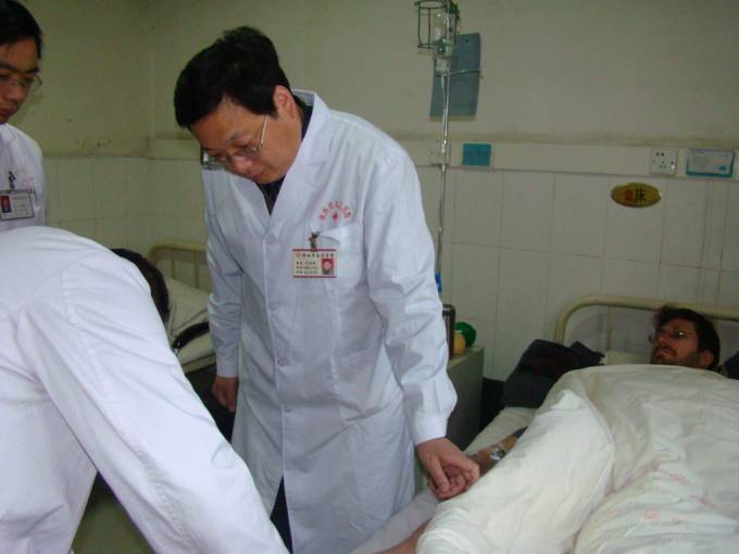 为英国友人实施大隐静脉结扎及剥脱术术后查房