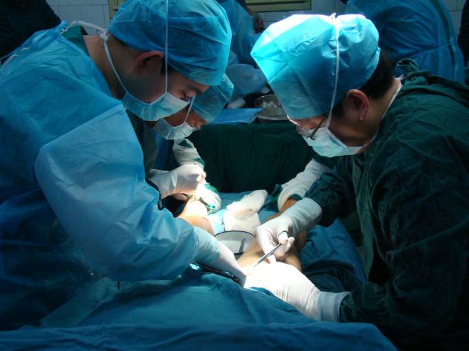 为英国友人实施大隐静脉结扎及剥脱术手术中