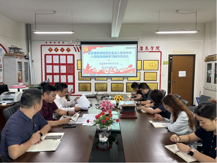 9月15日上午,医学康养学院在409会议室召开党总支扩大会议,集中总结深入贯彻中央八项规定精神学习教育成效,并对近期党建重点任务进行动员部署。学院党政领导班子、党总支理论学习中心组成员、各支部书记、科室负责人及行政管理岗教师参会,会议由党总支书记唐恭贺主持。