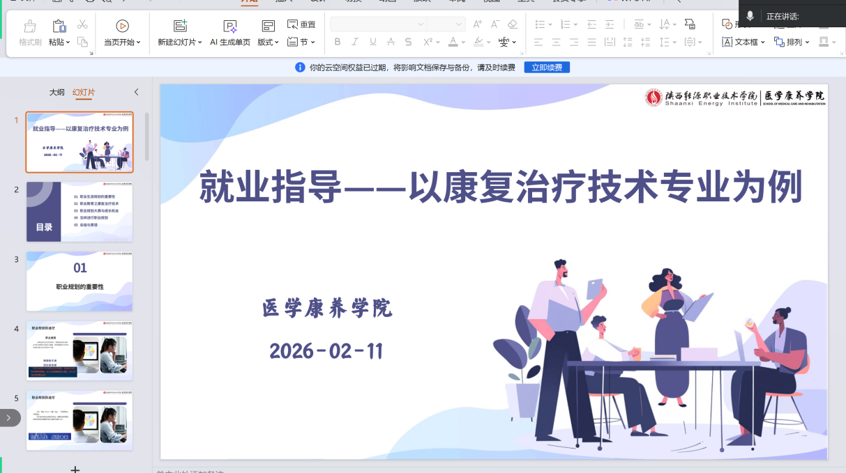 为深入贯彻落实高校毕业生就业工作部署,进一步提升学生职业规划意识和就业竞争力,2月11日,我院围绕康复治疗技术专业发展方向,组织开展了“康复治疗技术专业就业指导专题活动”。本次活动紧贴行业发展趋势与岗位需求,精准施策,助力学生高质量就业。
