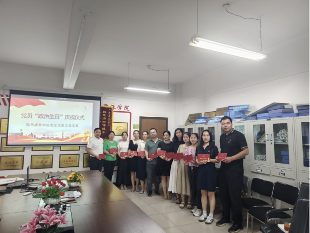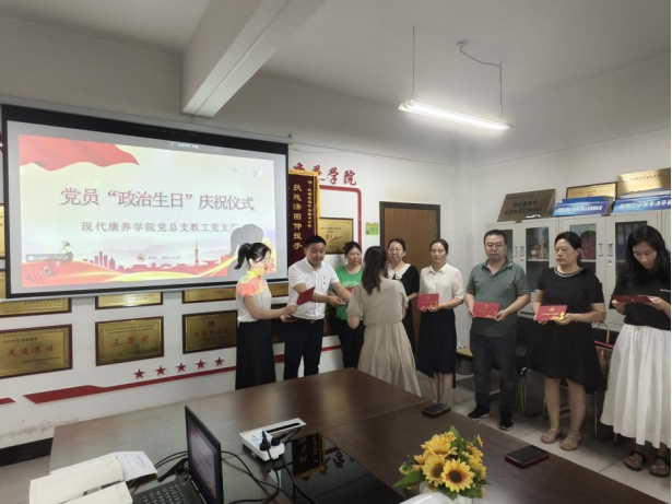 为引领党员回望政治生命起点,进一步强化党员的身份意识、宗旨意识和责任意识,激发党员的政治热情,使广大党员始终保持党的先进性和纯洁性, 6月26日下午,现代康养学院党总支教工党支部在409会议室开展迎“七一”党员“政治生日”主题党日活动,教工党支部全体党员教师线上线下参加活动,活动由教工党支部组织委员王腾飞主持。