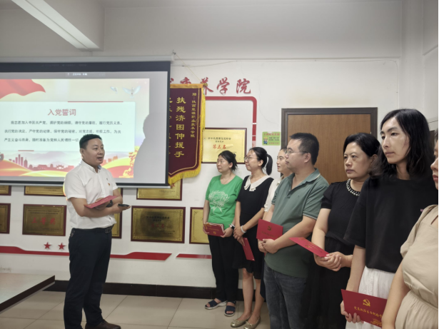 学院党总支书记唐恭贺以及教工党支部书记赖菁华为支部全体党员教师赠送了政治生日贺卡。随后,在教工党支部书记赖菁华的带领下,全体党员重温入党誓词,回忆入党初心,牢记初心使命。