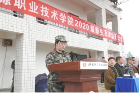 最后,校党委书记令狐培选向军训承训单位授旗,并宣布军训开始。2020年新生军事训练正式拉开帷幕。