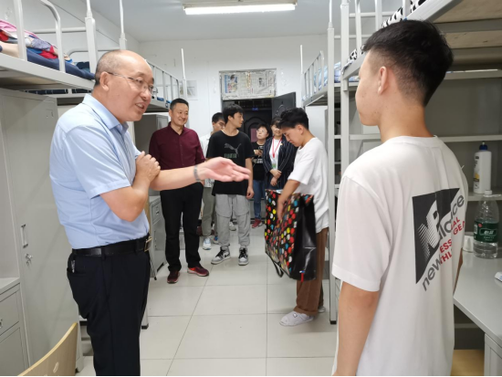 走进学生宿舍,任向明详细询问同学们的家庭情况、入学报到情况和对学校的环境适应情况。在亲切交谈中,详细询问饮食上是否适应、生活上是否习惯,入校后的感受以及专业发展等情况,他结合自己经历和体会叮嘱大家,大学是学习的地方,进入大学以后,首先要学会学习,树立目标、认真上课、好专业知识,积极参加相关职业技能大赛;其次要学会锻炼,健康的身心和强健的体魄是一个合格大学生的关键要素,要勤运动、会运动、爱运动,保持良好的精神状态;再次要学会生活,保持宿舍干净整洁、空气流通,养成良好的生活习惯、不吸烟、不酗酒,适度娱乐、不沉迷游戏。任向明还鼓励新生们有机会多走出校门看一看,参加各类活动,增长见识、增加胆识、提高认识。