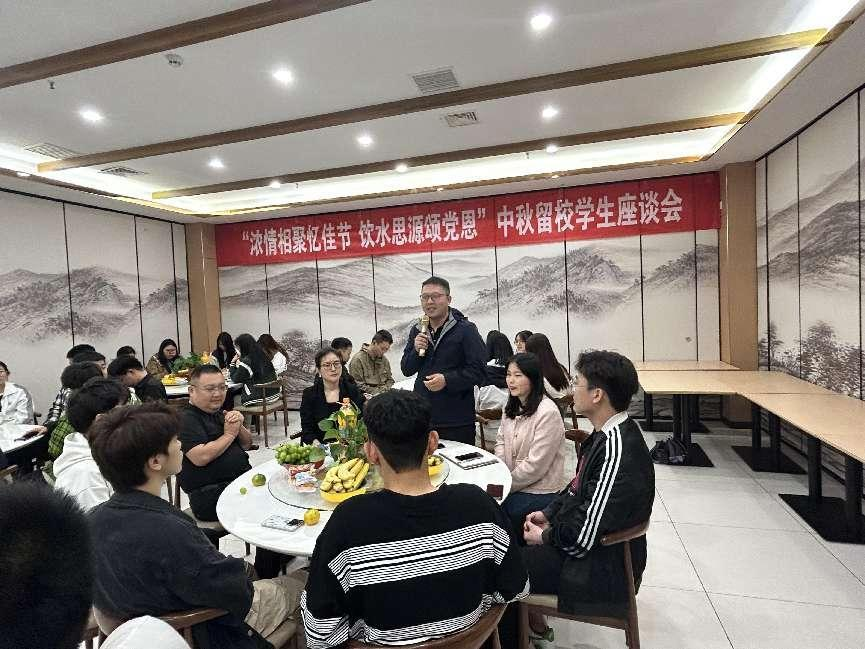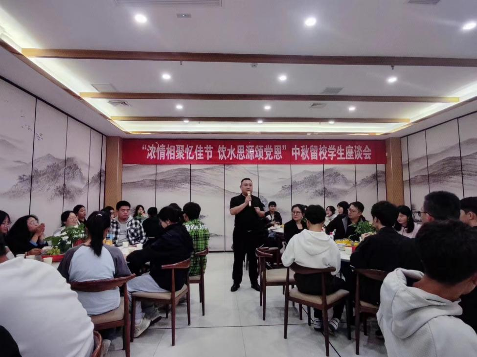 9月28日下午,为传承和弘扬中华优秀传统文化,让学生在温馨的氛围中度过中秋节,学校在菊园三楼开展“浓情相聚忆佳节 饮水思源颂党恩”中秋留校学生座谈会,学校40余名师生参加活动。座谈会由学生处副处长王晶主持。
