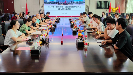 为落实立德树人根本任务,强化我校资助育人工作,进一步推动学校“春雨行动”困境学生教育助学关爱服务工作深入开展,切实做好家庭经济困难学生精准帮扶和感恩励志教育工作。2024年6月26日,我校开展2024年“春雨行动”困境学生夏季送清凉活动,为全校150名困境学生发放夏季慰问品,同时在办公楼第三会议室召开困境学生座谈会。校党委副书记任向明、学工部(学生处)负责人、学工部相关工作人员、各二级学院师生代表共同参与,座谈会由学工部部长冯超主持。