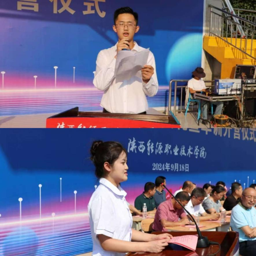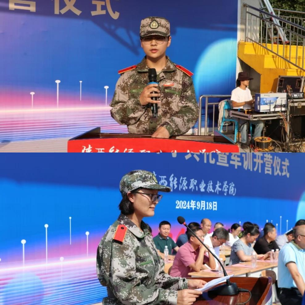 新生代表建筑与测绘工程学院无人机2401班刘雄、现代康养学院针推2402班王臻发言表示将以饱满的热情迎接大学生活,不断提升自我,努力成为社会的有用之才。