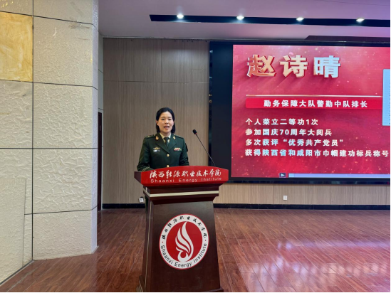 4月9日,学工部、保卫处和校团委主办、建筑测绘学院承办的“强军故事进校园”宣讲活动于实训楼六楼报告厅顺利开展,渭城区退役军人服务中心副主任赵阿妮、武警咸阳支队保卫科警官孙映斌、学工部、武装部负责人出席宣讲,全校300余名学生参与活动。
