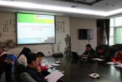 12月24日下午,学院召开2015年心理健康教育工作总结会。党委副书记郭开龙、副院长赵新法及学工部、团委、思政部负责人、系(部)党总支书记及心理咨询室兼职咨询老师参加会议。