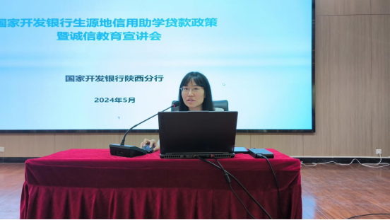 随后,国家开发银行工作人员赵莉对国家生源地信用助学贷款业务进行了全面讲解。详细介绍了助学贷款政策的申请条件、流程、还款方式等内容,为有需要的学生提供了及时有效的政策支持和金融服务。