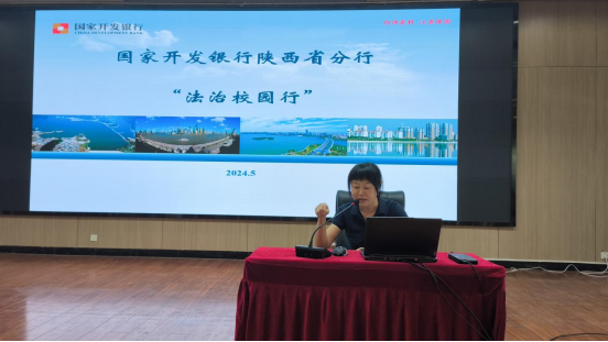 接着,国家开发银行陕西省分行田英进行了以“法治进校园——防范非法校园贷,争做理性消费者”为主题的讲座。结合生动的案例和丰富的实践经验,深入浅出地讲解了防范非法校园贷和校园常见法律问题等。让同学们更加深入地了解法治知识,感受法治的力量。