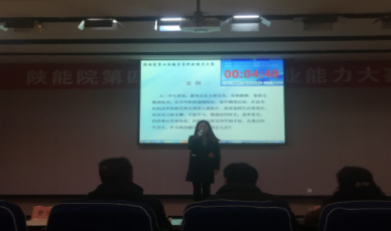 12月25日决赛在实训楼6楼报告厅隆重举行。校党委书记令狐培选、党委副书记郭开龙莅临比赛现场观摩指导。大赛邀请陕西邮电职院学工部长作为特邀评委,学校机关总支、教学总支、思政部、学工部等部门负责人担任评委。各二级学院党总支书记、学工办主任、全体辅导员及学生代表现场观看比赛。
