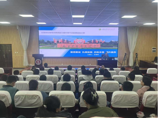 本次训练营邀请西北农林科技大学资源环境学院团委书记兼学工秘书,全国高校辅导员素质能力提升骨干训练营“十佳标兵”王昱泽做专题培训。王老师以《勤思勤省 扎根实践 历练本领 提升素养》为题,从环节解读、备赛技巧、能力提升、心得感悟四个方面进行经验分享,并结合案例与自身备赛经历与辅导员们进行了现场交流互动,令辅导员们受益匪浅。