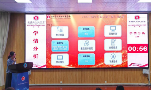 全校辅导员前期经过二级学院选拔推荐、基础知识测试环节后,10名辅导员入围决赛。决赛设置学情分析、案例研讨和谈心谈话三个环节。在基础知识测试环节,通过党的创新理论、相关方针政策等内容,全面考察辅导员的政治素养与理论功底;学情分析环节主要考察辅导员对所带学生基本情况的熟悉程度;案例研讨环节主要考察辅导员综合运用理论分析问题、研判问题、解决问题的能力;谈心谈话环节则直观考核辅导员解决学生实际问题的能力与水平,充分展现高校辅导员的职业素养、沟通技巧与育人智慧。